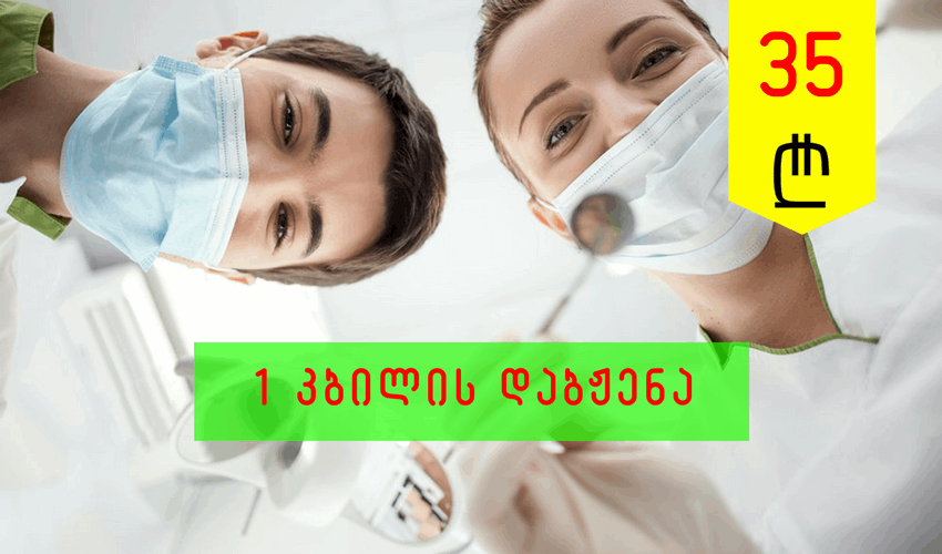 გთავაზობთ 4 ლარად, 70%-იან ფასდაკლების ვაუჩერს 1 კბილის დაბჟენის სრულ პაკეტზე სტომატოლოგიურ კლინიკაში «დენტალ ქეა»