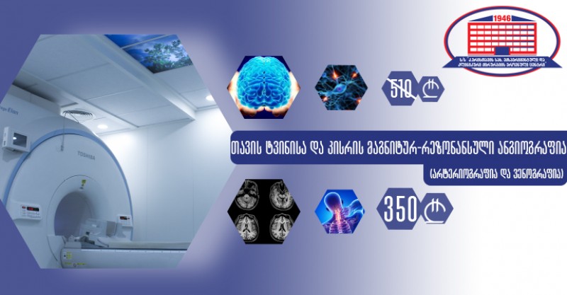 ქირურგიის ეროვნული ცენტრი გთავაზობთ თავის ტვინისა და კისრის მაგნიტურ–რეზონანსულ ანგიოგრაფიას, არტერიებისა და ვენების კვლევას.